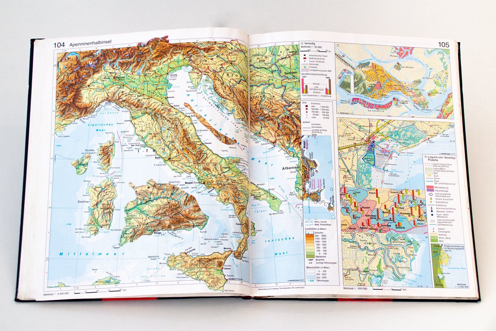 Two copies of an atlas, which is commonly used for educational purposes throughout Germany, have been altered through the use of collage techniques. The book pages were cut, perforated, torn and glued back together. The former cartography of planet earth has been transformed into depictions of an alternative, surreal world.