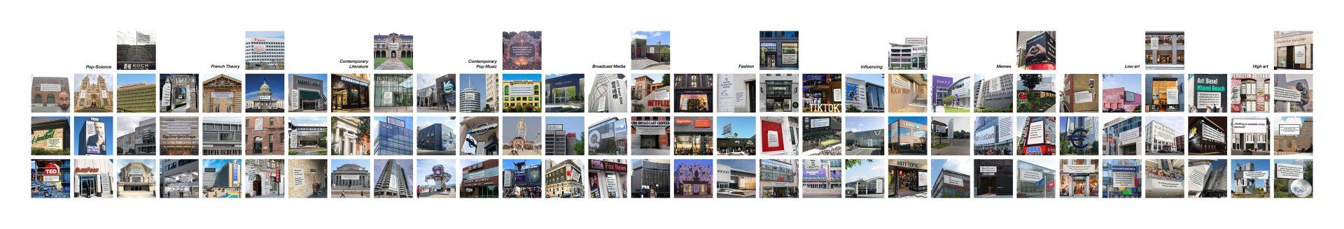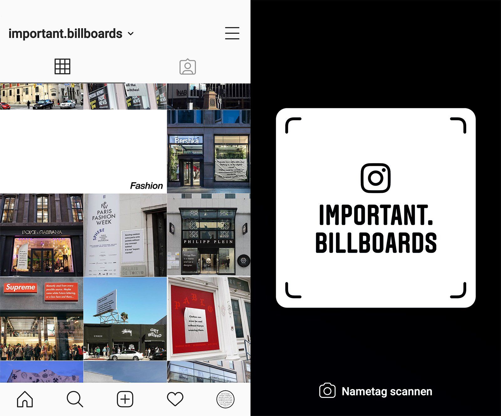 Over a period of a month, pictures of different facades have been posted regularly on the profile "important.billboards" on the social media platform "Instagram". These pictures have been digitally manipulated to show different forms of physical print advertisements, which were meant to elucidate problems or critical trends persisting in the industry or sector represented by the displayed buildings. These images have been advertised to the supposed target audience of the displayed sector by using marketing options integrated in the used application, subverting usual ads.